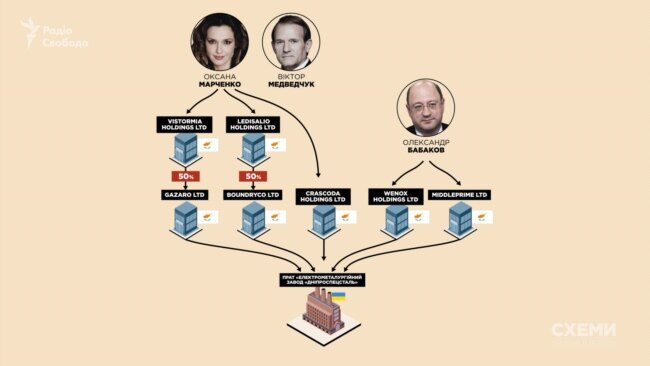 У ньому йдеться про те, що ще у 2012 році Віктор Медведчук, а з 2016 року – його дружина Оксана Марченко, через низку компаній стали власниками 33,33% акцій компанії «Болвік Венчуріз Лтд».
